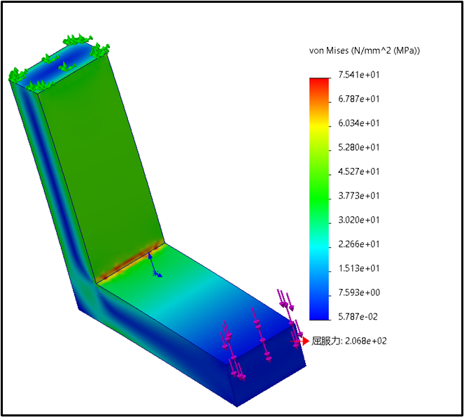 SOLIDWORKS Simulation 直角L型支架的应力分析